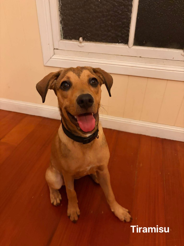 Tiramisu (aka ‘Missy’) is an outgoing little pup, she loves exploring new places on her walks and meeting new people and dogs. She loves to play with balls, tug of war and chasey. Missy likes to be close to you and will follow you around the house and lie down near you. She enjoys belly rubs and ear scratches.