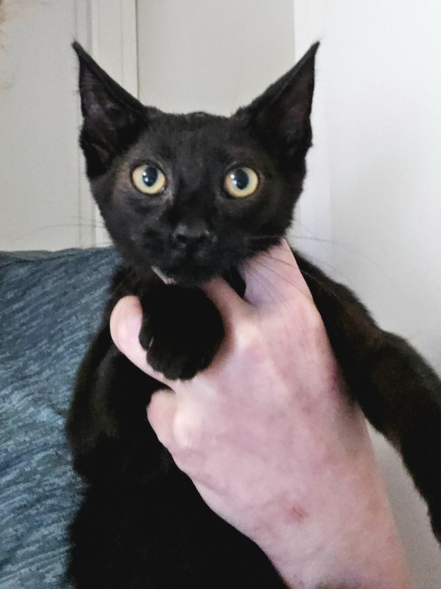 Eggs is also the more reserved of the two, sometimes a little timid when meeting new people. He will quickly warm up when treats or toys are on offer. He gets along great with other cats. He would dearly love a home where someone will be around a lot to play with him frequently.
