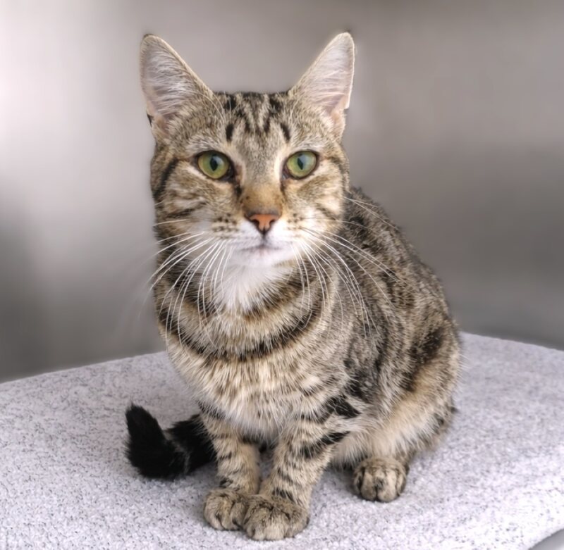 Hi, I’m Miss Cinnamon Snuggle, a female Domestic Short Hair. Age: 2 Years. I’m an average-energy cat who loves sunbeams, gentle pets, and a little playtime with feather wands and crinkle balls. I’m affectionate, curious, and enjoy curling up on a warm lap after a cozy chase. I have no known child-related issues, so gentle kids who treat me with kindness will be great company. I thrive with routine: daily snuggles, regular brushing, and a cozy spot by a window for bird-watching. If you’re searching for a calm, loyal companion who will greet you with purrs and a soft nudge, I might be the one. I’d love to meet you and find my new forever home. Please ask about meeting Miss Cinnamon Snuggle today!