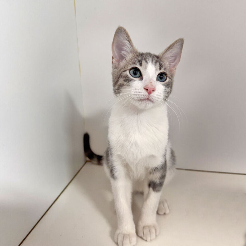 Rowan is a thoughtful little kitten with a curious mind and a tender heart. He may seem reserved at first and can act a bit coy while he figures out what’s happening around him, but he is genuinely interested in people and enjoys being near you. With patience and reassurance, Rowan becomes more confident and begins to show his playful and affectionate personality. He loves to explore, investigate his surroundings, and once he settles in, his content purring says it all. Rowan would do well in a home with children of any age, especially one that understands he may need a moment to adjust before showing just how sweet and loving he is.