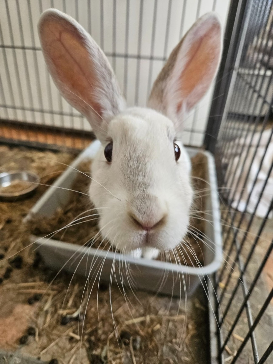 Meet April, a delightful and friendly rabbit with a knack for turning every day into an adventure. Her inquisitive nature shines through as she explores her surroundings, always on the lookout for new and intriguing experiences. With her bright eyes and sweet demeanor, April is sure to warm the hearts of those around her. April loves a good head scratch, and spending her free time flopped out.