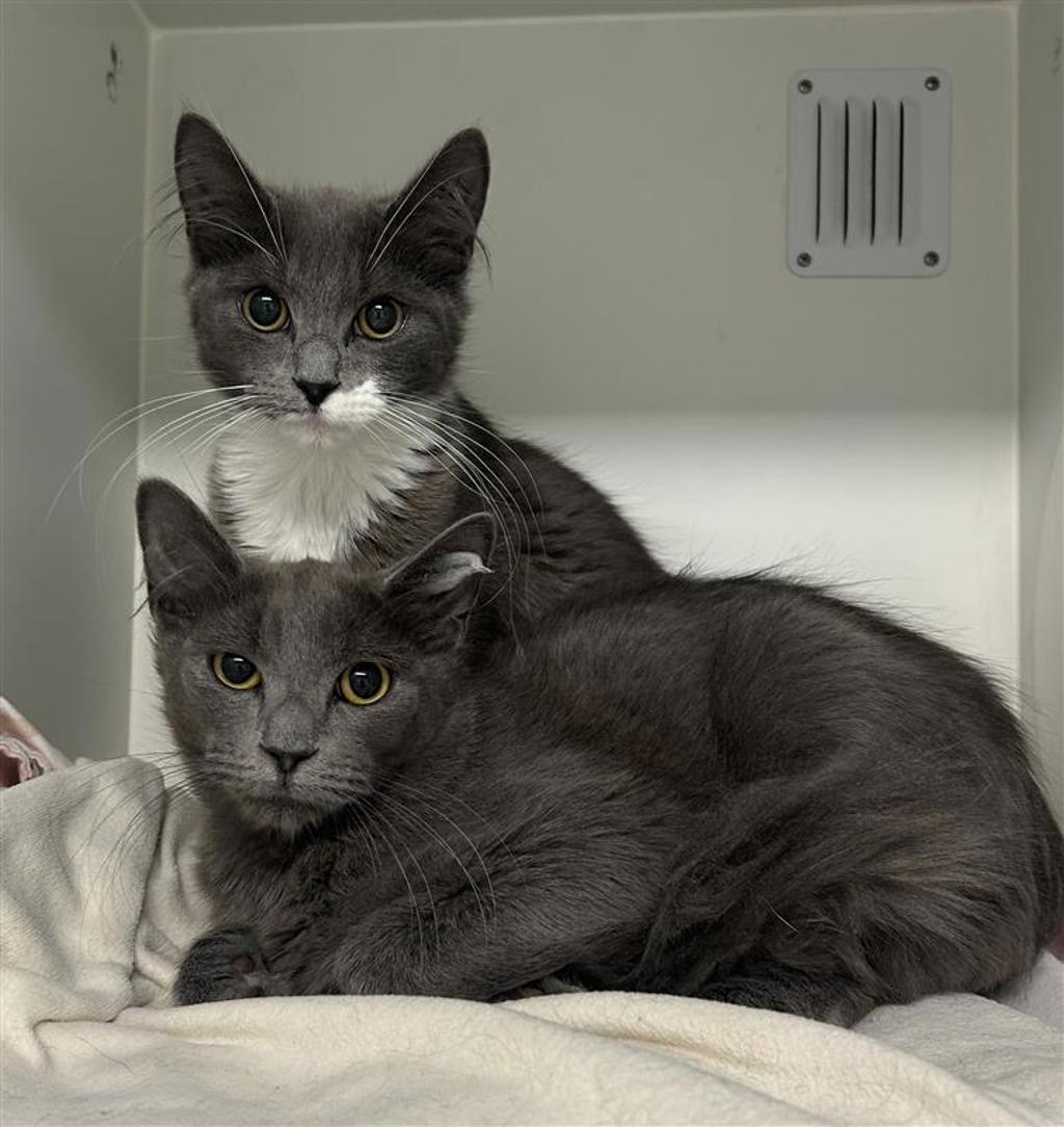 Ocean, in her lovely grey and white coat, and River, a stunning solid grey girl, are deeply devoted to one another. The world feels a little big and overwhelming for them right now, and they take great comfort in staying close - where one goes, the other follows. Their connection is truly special and they will only be rehomed together.