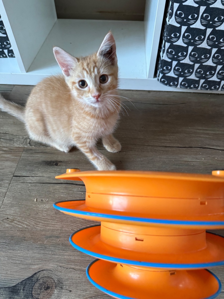 Gibbs is a cheeky boy the leader of the brothers. Whether it is into mischief leading the zoomie x anightly runs, play fighting, or playing with the toys. He will come up for a snuggle on your lap with his brothers. He likes exploring and you will often find him locked in a cupboard, or curled up on your bed as you left him in there. He came to us as part of a last litter program with his two brothers and 3 sisters. He is ready to love his new family or person and would fit quickly into any dynamics. Has had no dog contact but with slow introduction would be fine with a calm dog