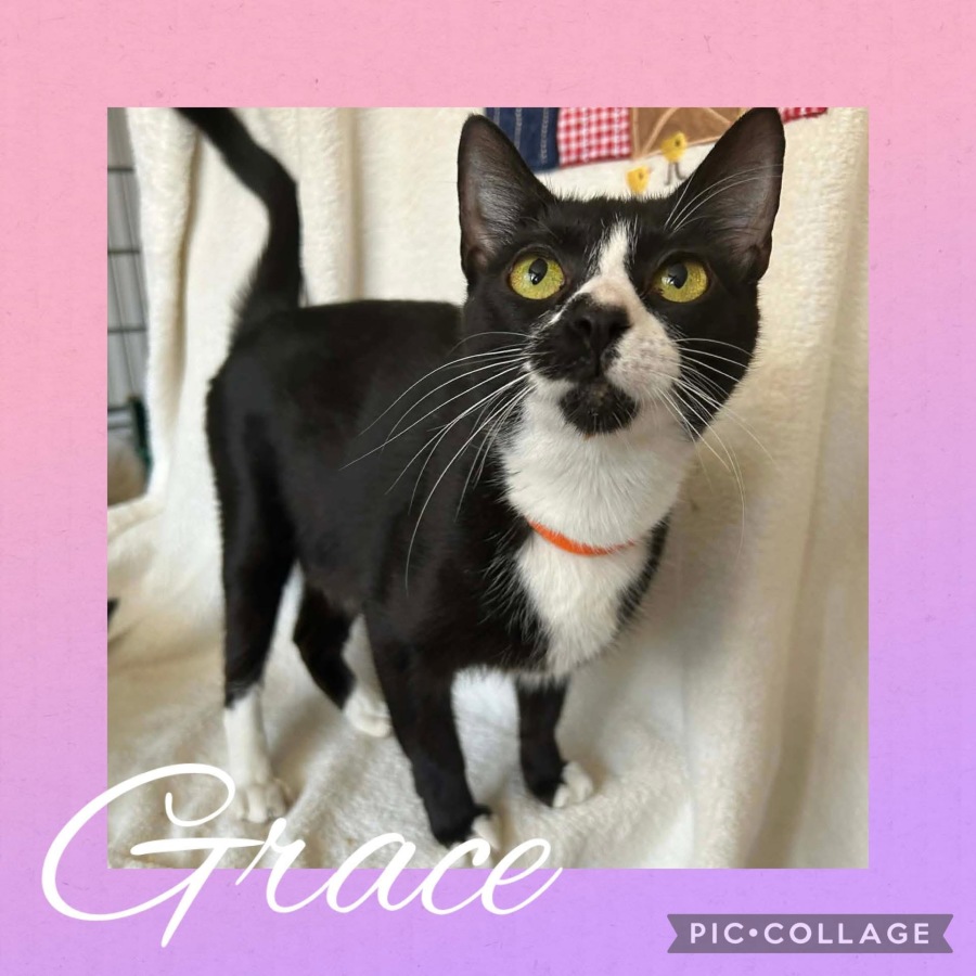 Grace is a loving devoted very young mum through no fault of her own. She has been a fantastic mother to her 5 kittens through adversity to raise these amazing babies. She has a very loving personality and loves pats but isnât a huge fan of being picked up. She has so much love to give. She can be shy at first but once she trusts you she comes out and shows you all the love she has to give. She would make a wonderful addition to a family. Sheâs not real fond of dogs