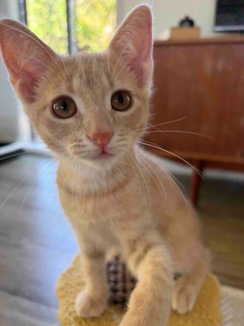 My new home will need to be with people who have owned cats before and if there's kids, they'll just need to be a bit older & know how to share space, respect boundaries, and give me the time to settle in. I'd do best in a quiet, calm home where I can explore at my own pace and still have fun. My ideal family will have time for daily play and gentle routines. If you’re looking for an affectionate, adventurous kitten who will grow into a loving companion, I’m your girl. I’ll bring sunshine to your days, purrs when I’m content, and a lot of personality to keep you smiling. Ready to meet me and start our new adventures together?