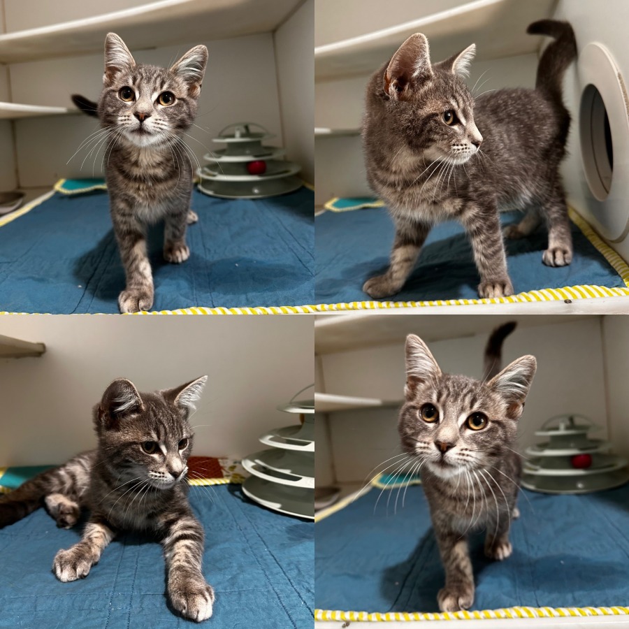 Say hello to"NAVY" (c260203) this charming Grey Tabby & White Domestic Short Hair kitten! He’s not only adorable with her classic tabby stripes and bright white markings, but she’s also wonderfully sweet and affectionate. Friendly and social, he loves making new friends and being part of the action — especially if it includes lap time and snuggles. He’s ready to bring joy, warmth, and lots of love to her forever family.