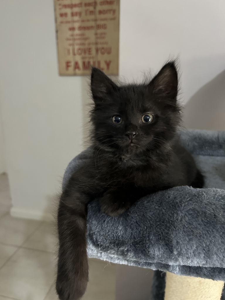 True to his name, Whaaaambulance is always ready to sound the alarm... usually to announce that it's time for attention, snacks, or play! This stunning little black tabby boy is wonderfully chatty and loves having full conversations with his humans. If you're looking for a kitten who will greet you at the door and keep you company with sweet commentary throughout the day, Whaaaambulance is your guy.