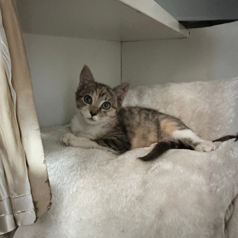 Meet Kit, a gentle and tender hearted kitten who may be a little shy at first but quickly reveals her loving nature once she feels safe. This sweet girl likes to take her time getting to know new people and surroundings, quietly observing before stepping forward for soft pets and reassurance. Once she trusts you, Kit’s affectionate side truly shines, and she will happily curl up beside you, purring contentedly and soaking up attention.
