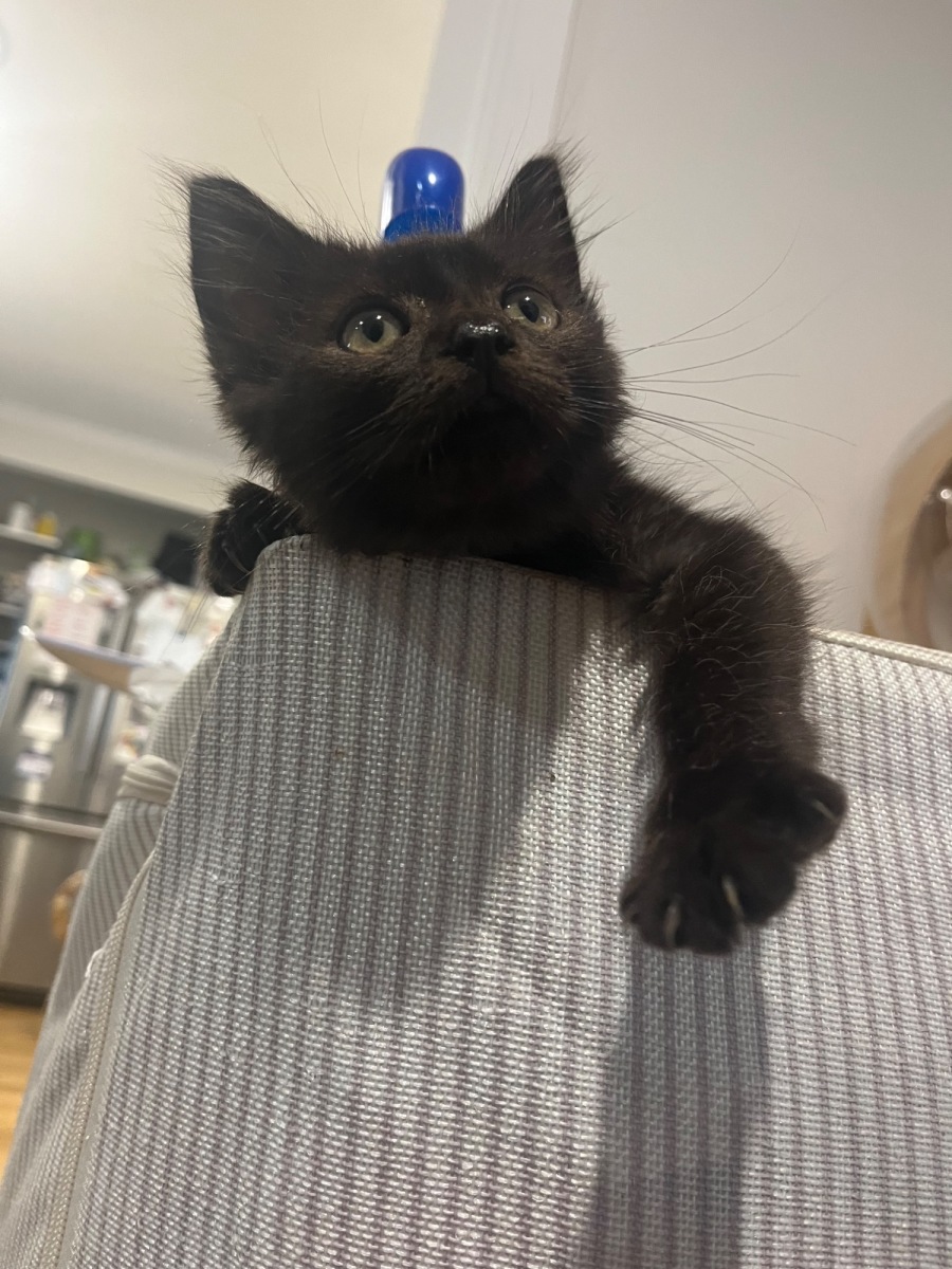 But underneath the comedy act is a sweet, affectionate boy who loves connection and being part of the family. He’s playful, curious, and full of personality — the kind of kitten who turns ordinary moments into something special.