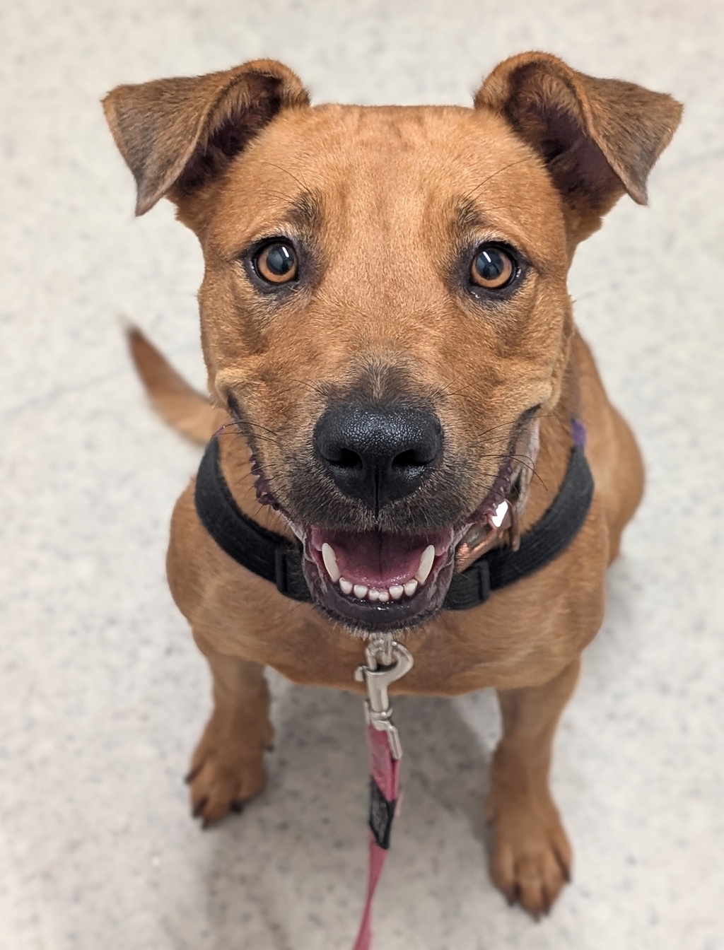 Hi, I'm Donut! I'm a super sweet girl who absolutely loves all the attention I can get from my people! I'm eager to please too, so continuing my training will be easy! I do have lots of energy to share, so I would make a great hiking and camping companion, but I'm also very good at settling on my bed after all that fun! I'm a bit of a goofball and I can get the zoomies, so I'll be sure to keep you entertained! I wouldn't mind going to a home with another friendly dog, but I would love to meet them first to see if we're a match! But I am truly a people dog so I would love for my people to be around a lot! So, if you're looking for a loving companion who will keep you entertained and loved, I'm your girl!