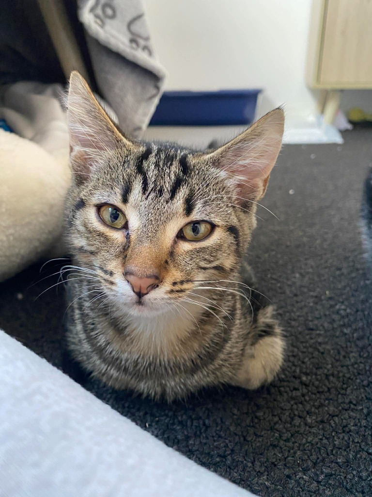 Once she feels safe, Gherkin blossoms into a loving, affectionate companion who enjoys quiet cuddles and being near her people. She’s especially wonderful with other cats and would thrive in a home with a confident feline friend to help her continue building confidence.