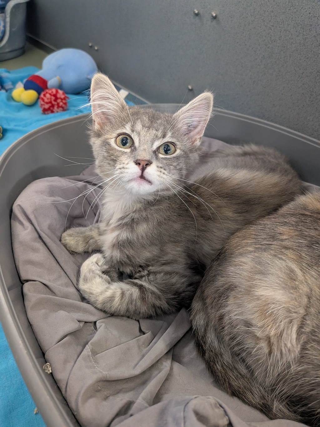 Elle is an adorable young kitten with a gentle nature and a playful spirit. She loves discovering new toys, practicing her tiny pounces, and exploring the world with wide‑eyed curiosity.