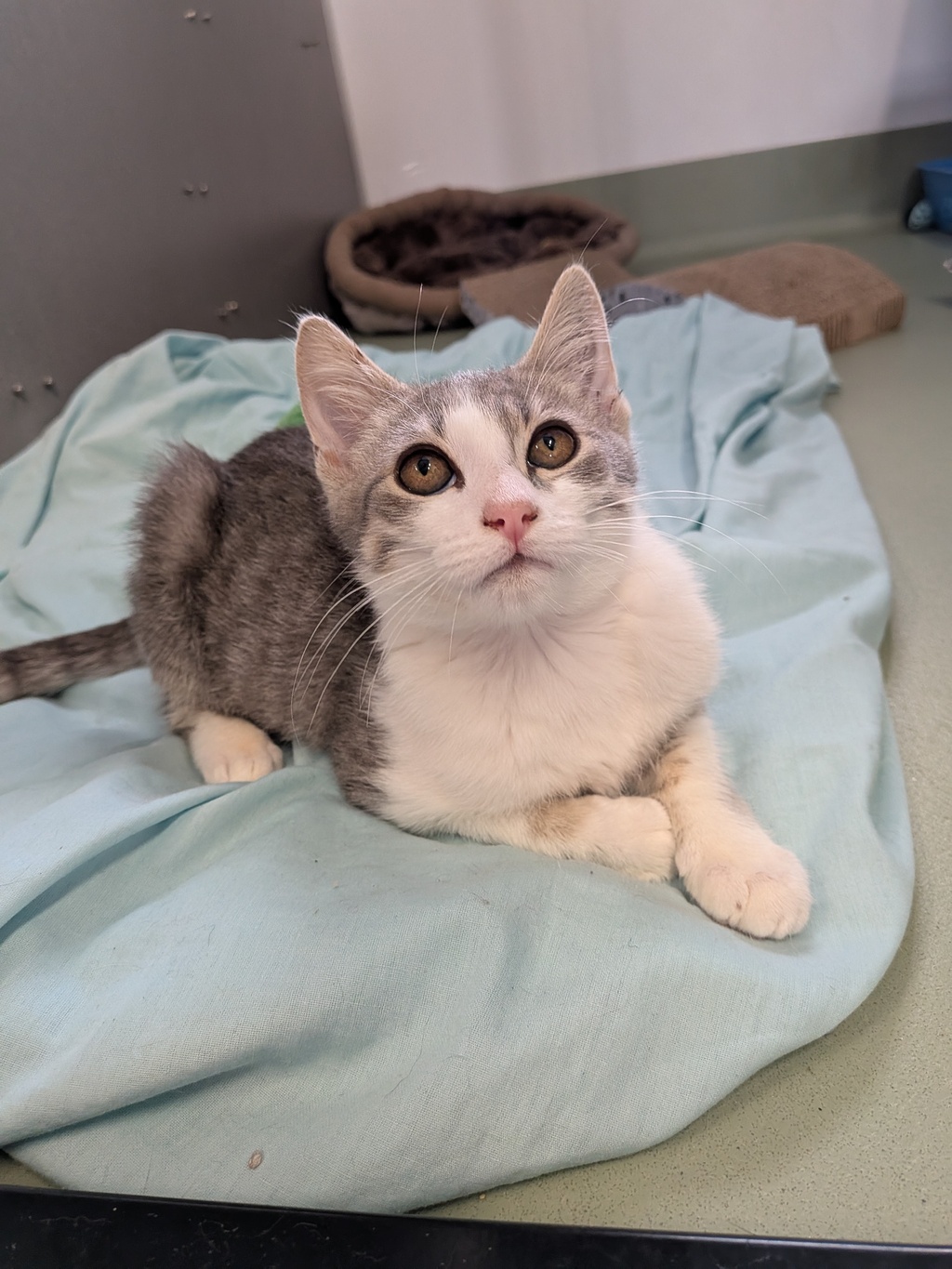 Fred is a cheerful little guy with bright eyes and a heart full of love. He might hesitate at first - new things can be a lot when you're small - but once he warms up, he's all purrs, head bumps, and happy wiggles.