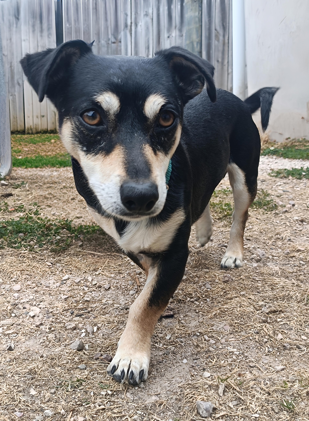 Gizmo is a black and tan Jack Russell x Fox Terrier with a long little body and the colouring of a Kelpie - think "Jack-weenie" style with extra swagger! This small but mighty boy came from a home with a large number of dogs and truly enjoys canine company. He's a happy, social little character who loves friends of a similar size and would likely thrive with a playful buddy by his side.