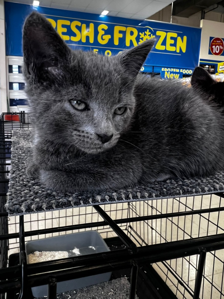 Introducing Diesel, a charming 10-week-old Russian Blue kitten whose stunning looks and endearing personality will capture your heart. With his sleek, silvery coat and striking eyes, Diesel is not just a visual delight, but he is also a sweet and affectionate companion with a playful spirit.
