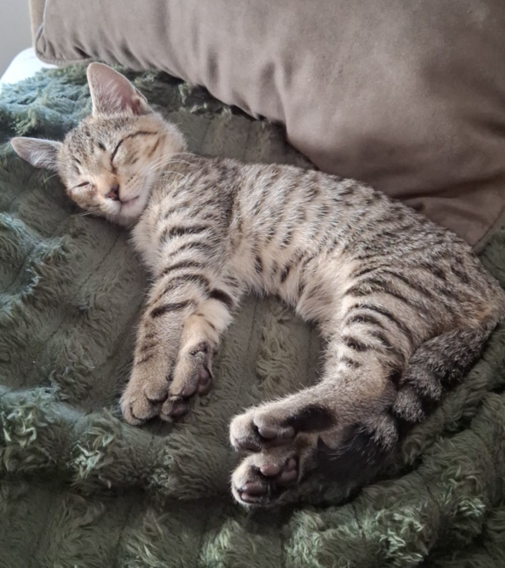 This 10‑week‑old tabby boy is the definition of easygoing. Whether he's exploring, snoozing, or chasing a toy, George approaches everything with confidence and curiosity. Nothing seems to faze him - he just rolls with whatever the day brings.