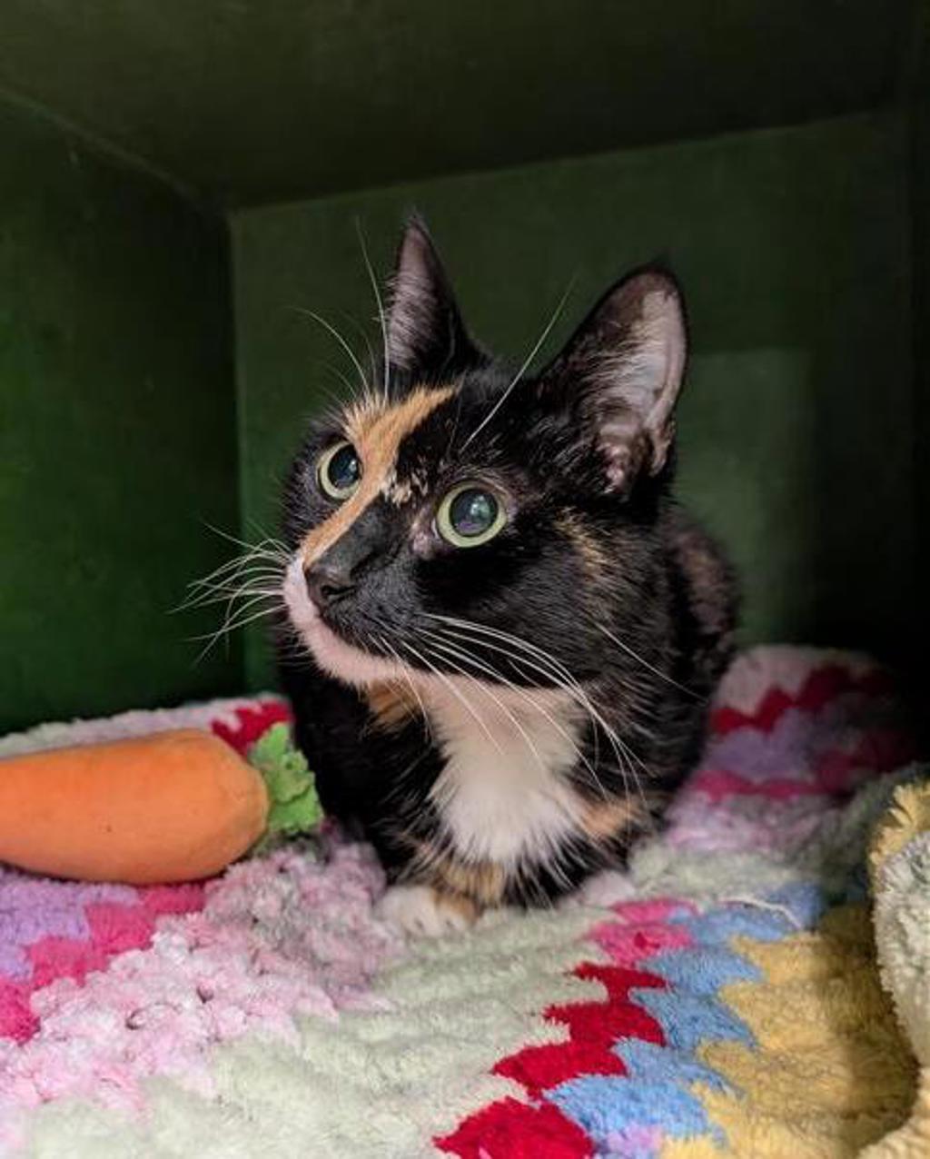 Introducing Bella, a lovely senior girl who thrives on a predictable routine and appreciates a peaceful environment that lets her move through life at her own gentle pace. Her perfect day includes long, cozy naps, curling up in her favourite hidey holes, and quietly exploring her surroundings.