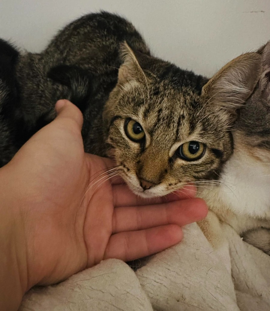 This sweetheart adores being in cuddle piles with his siblings and getting gentle chin rubs and ear scratches. He leans in and starts to purr with his fave chin scratches!