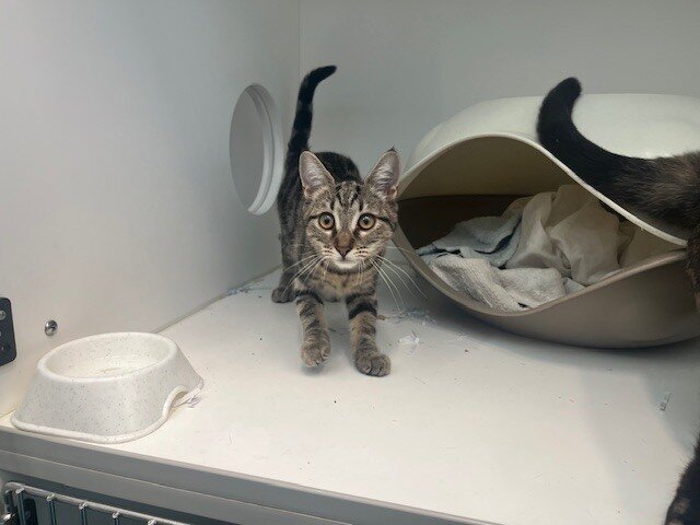 Hi, I’m Moon, a female Domestic Short Hair. I am 4 months old. My energy level is average, so I love a mix of gentle play and cozy cuddle time. I’m curious and friendly, always exploring a sunny window or curling up on a warm lap after a nap. I have no known issues with children, so I could be a purr-fect fit for a family or a calm home with kids. I enjoy treats, feather wands, and soft blankets. I get along well with other gentle cats and I thrive on a predictable routine—regular meals, a comfy bed, and daily play. I’m learning the basics: litter habits and coming when called, with patience and love. If you’re looking for a sweet, affectionate companion who will grow with you, I’d love to meet you. Please consider adopting me and giving me a forever home where I can purr, bask in sunbeams, and share quiet companionship.