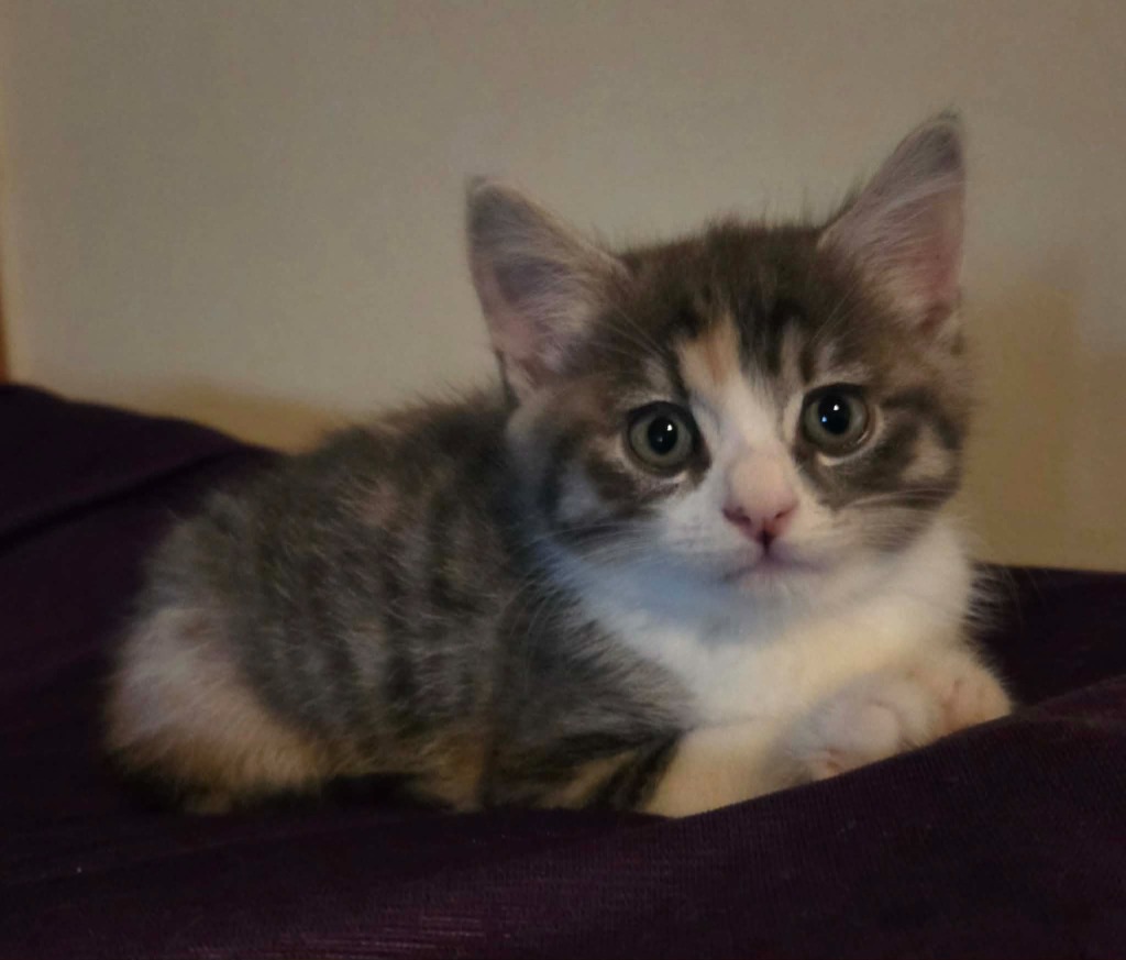 She’s the kitten who will gently bat at a toy, then decide your lap is the real prize. She loves to sit like royalty on her throne (that’s you), calmly observing the world with soft, curious eyes. Playtime for her is dainty and thoughtful — no roughhousing required.