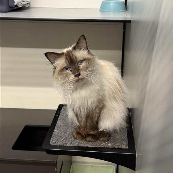 Hi, I’m Ebony. I’m a 7-year-old female Ragdoll who loves quiet, cozy days. My energy level is average, so I’m happiest lounging in sunbeams, curling on a soft blanket, and sharing gentle cuddles with my people. I’m affectionate and calm, the kind of cat who follows you from room to room and settles into your lap when you sit down. I have no known child-related issues, so I can adapt to homes with children who are kind and respectful. I’m not a fan of loud chaos, but I adore patient, loving households that give me a little time to warm up. As a Ragdoll, I’m known for my sweet temperament and plush coat. I enjoy brushing, friendly pets, and a cozy spot near a window for bird-watching. I’m content with other calm animals and I’m happiest when I’m part of the daily rhythm of a cozy home. If you’re seeking a steady, devoted friend who loves gentle companionship, I’d love to meet you. Ask about me at the shelter to arrange a visit and maybe we’ll start our new chapter together.