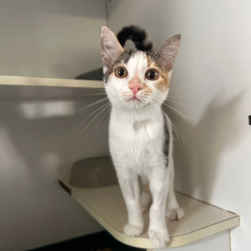 Moonflower would do beautifully in a variety of households, whether with individuals, couples, or families ready to embrace the joys of kittenhood. She is likely to adapt well to respectful children and, with proper introductions, other pets too. Above all, she is looking for a forever home where she can feel safe, cherished, and included in daily life. If you are searching for a sweet, curious kitten to brighten your days, Moonflower is ready to grow right alongside you.