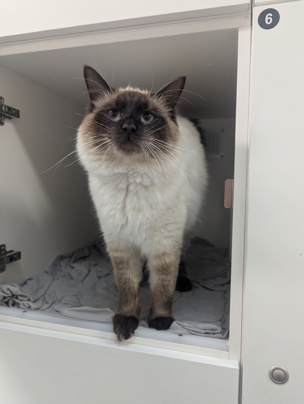 One year old. Seal point. Blue eyes that look like they were painted with the calmest part of the ocean. Finley is a classic Ragdoll in every sense, complete with the signature floppy cuddle routine that made the breed famous.