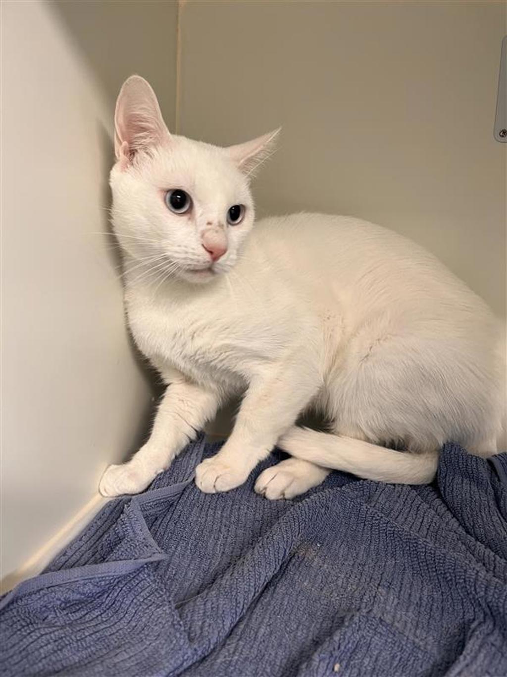 Handsome, snowy white, and just one year old, Sinatra may open with a tiny hiss instead of a grand serenade... but beneath that nervous introduction is a heart absolutely brimming with love.