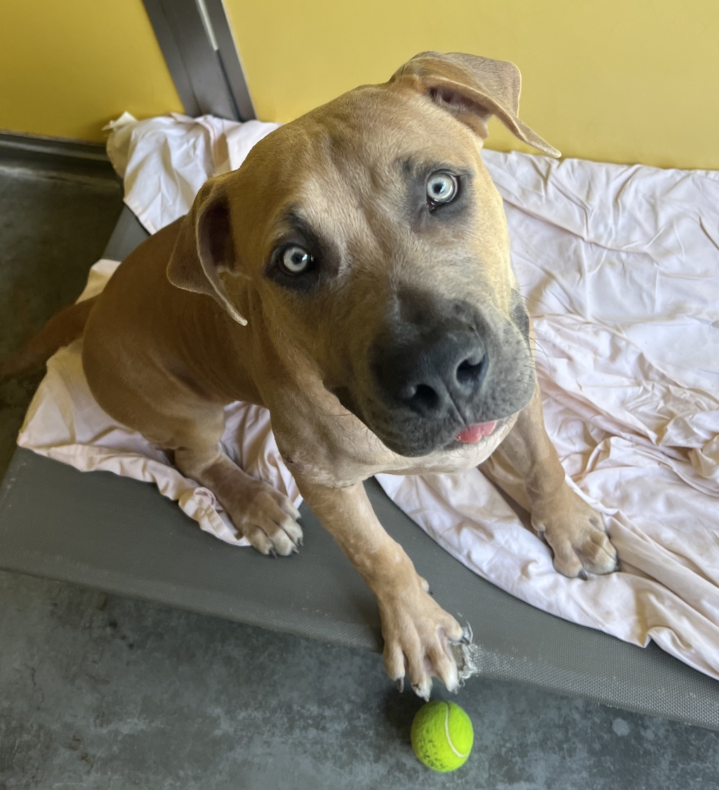 Valentine is a very loveable, affectionate boy. He can be a bit worried in new environments and when meeting new people. He will need patient and supportive family that can take the time he'll need settling him to his new home. Valentine can become a bit aroused and excitable; he can be jumpy and be quite goofy. He will do well with continued training, where he can continue to learn his basic manners and impulse control. He is still a young lad that will do well with regular enrichment opportunities and positive training. He loves his food, we recommend feeding his meals through enrichment toys an activities. We recommend older, calm children in the home that can respond appropriately to dog body language. He can be a bit worried with loud, unpredictable movements. Must meet at time of adoption. Also, he'll need to meet other dogs at time of adoption. Shy worried boy so will need a calm respectful doggie friend. His new owners will need to take things slowly and allow him to settle and bond with the family before introducing him to new doggie friends to ensure that all experiences and interactions that he has are positive. No dog parks, beaches etc. These environments make it difficult to control interactions and ensure only positive interactions are had.