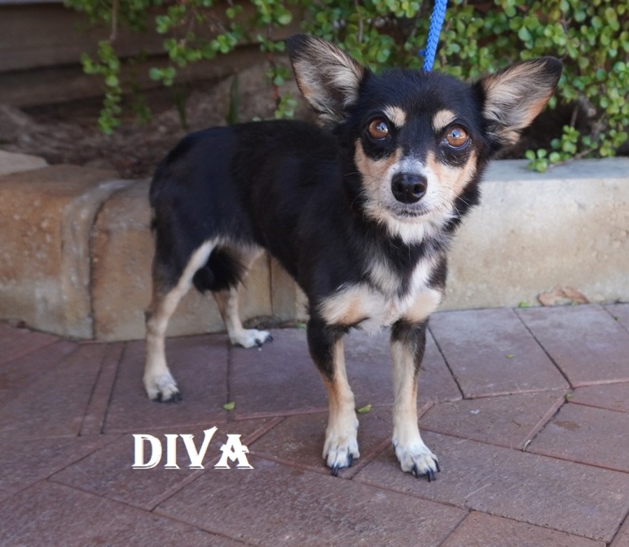 Diva may be tiny, but her personality shines bright. This little black and tan Chihuahua has clearly had a rough start and arrived a bit neglected, but despite everything, her spirit is still very much alive.