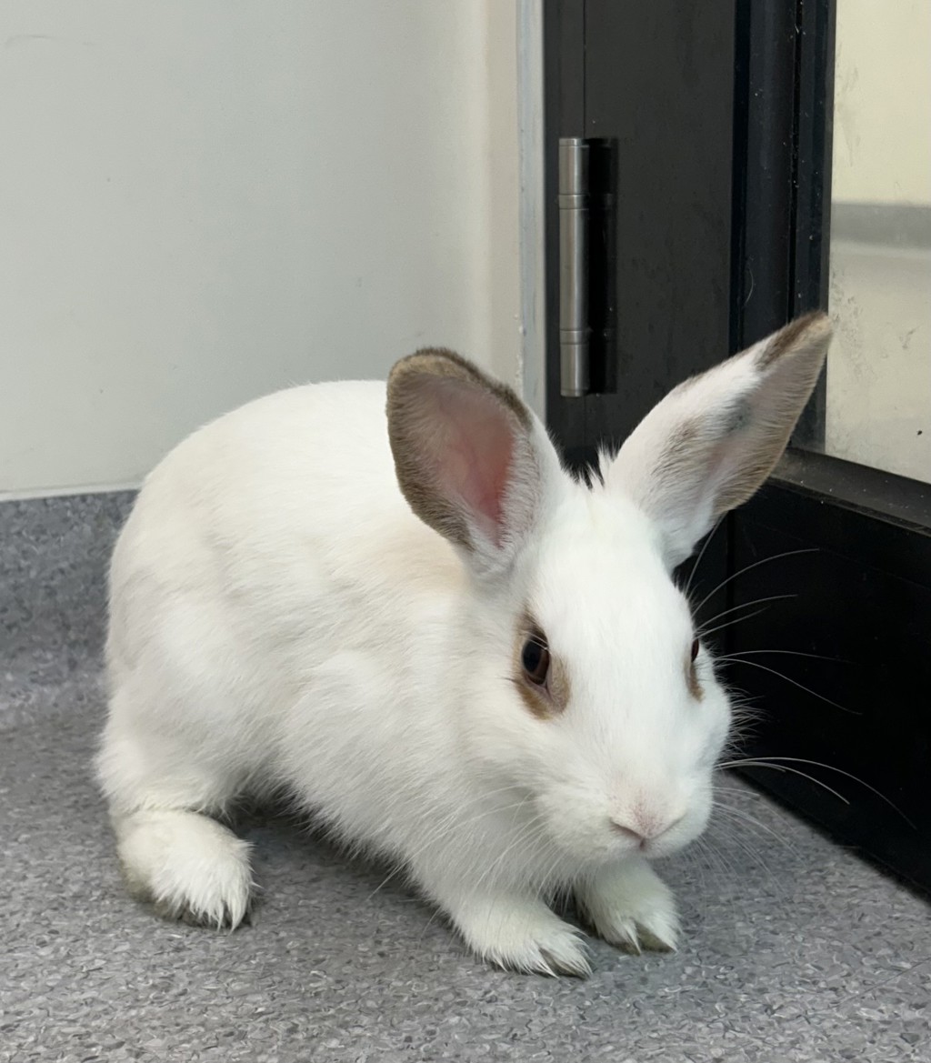 Walnut is a stunning five-month-old white and brown female with the softest fur and the sweetest nature. As one of three siblings, she has grown up with company and would love a home where she can continue to feel safe, loved, and part of the family.