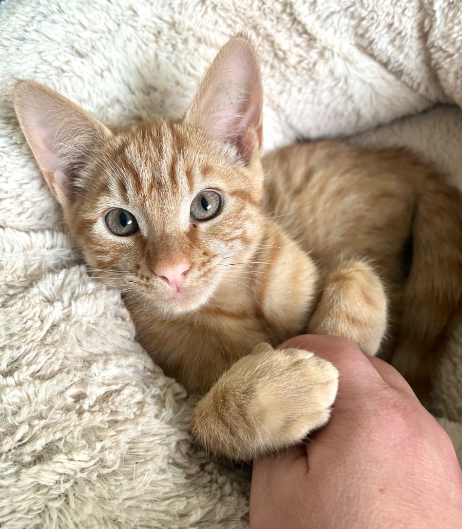 Always the first to explore and check everything out, Goldie is the most adventurous of his siblings. His favourite thing to do is jump into, jump out of and generally sniff out any adventure he can find. And he will let you know with cute little meows once he’s found it.