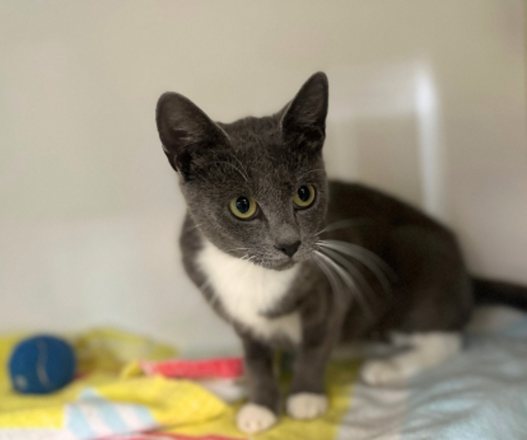She's the kind of cat who prefers soft voices, cozy corners, and patient people. Cleo loves having a warm spot to curl up in and will happily observe the world from a comfy perch. While she may not be the first to greet you at the door, give her time and she'll reward you with soft purrs, tender head bumps, and the quiet companionship that only a special cat can offer.