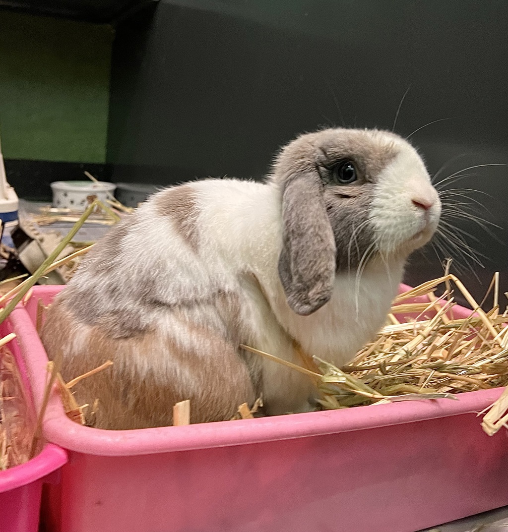 Raisin Bran would love a spacious indoor environment with plenty of enrichment, cozy hiding spots, and opportunities to forage and play. While he prefers to keep all four paws on the ground, he builds trust beautifully with calm, patient handling. Raisin Bran may like another friendly rabbit for company, pending a careful meet and greet. Come and meet Raisin Bran!