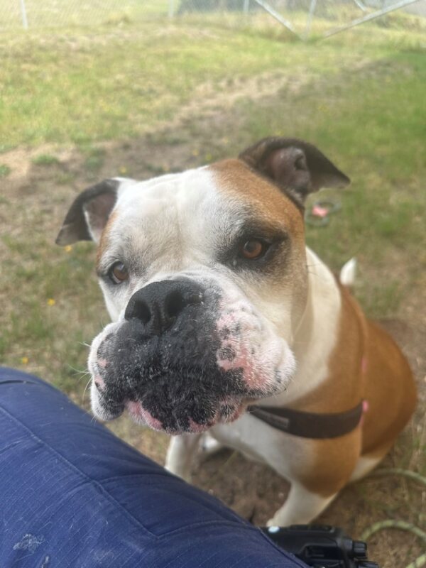 Hi, I’m Bentley — a five-year-old Australian Bulldog with a sturdy build, a soft heart, and a very serious commitment to loving my people. I’m a charming, loyal kind of guy with a little burst of happy excitement when I see you (I just can’t help it!).
