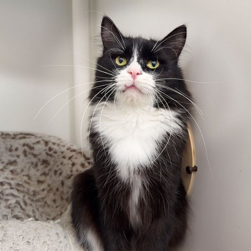 Chimpy’s history with other cats is unknown, so if there is already a feline at home, a slow and careful introduction would be best to help everyone feel comfortable. With patience and kindness, Chimpy has the potential to adapt well and become a wonderful companion. If you’re looking for an affectionate, easygoing cat to share your home and heart, Chimpy could be the perfect addition.