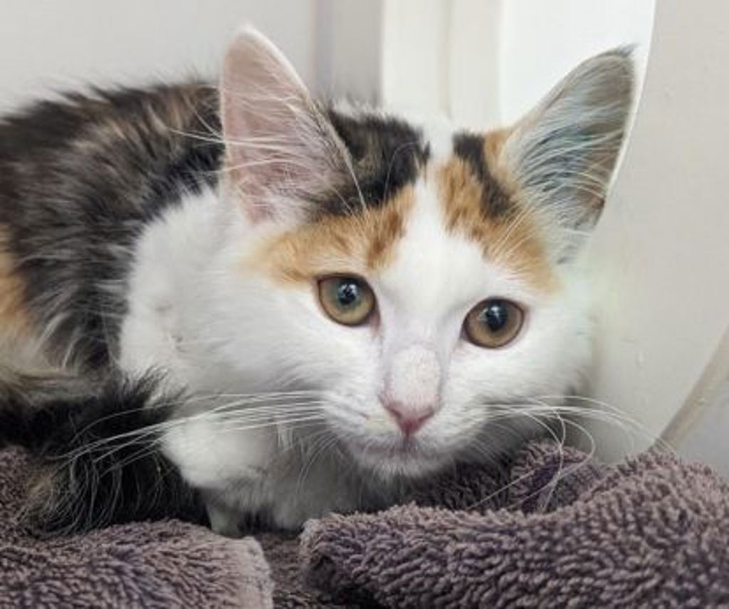 Princess is a beautiful little kitten who is finding the shelter a bit overwhelming, so she can come across as shy at first here. In foster care, though, she showed her true colours straight away- a friendly, playful, and very energetic girl who loved exploring the house and being part of the action.