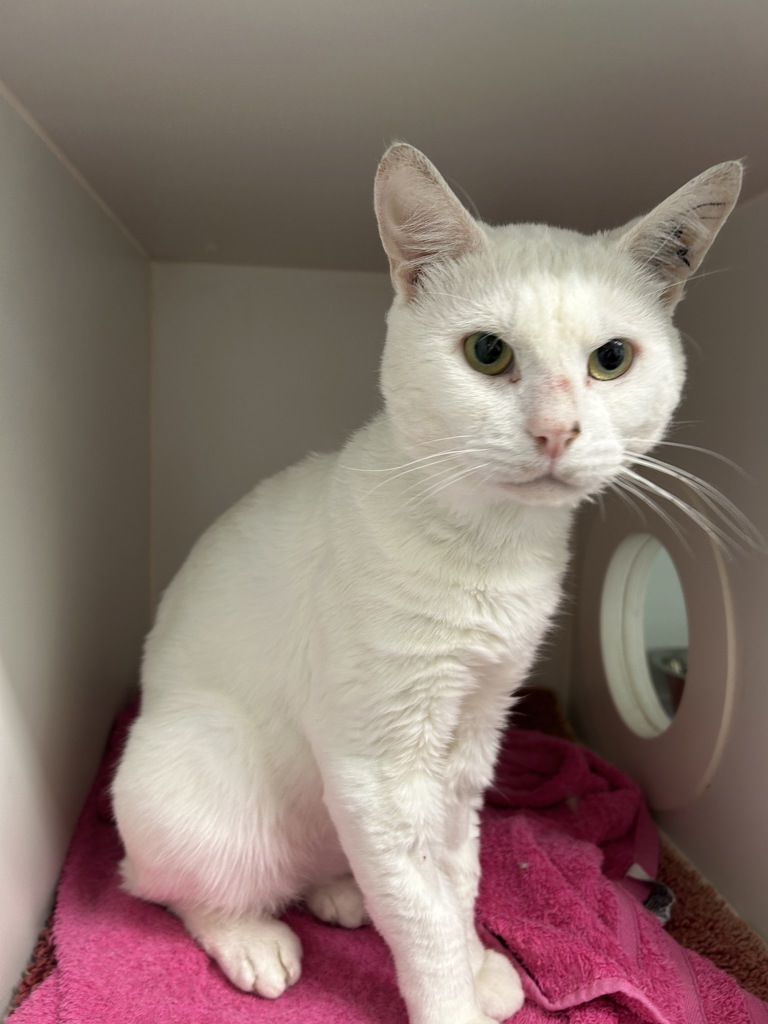 Meet Gobbledok, a stunning pure white boy with a big personality and an even bigger heart. This lovely boy is incredibly friendly and affectionate, and once he's comfortable in his environment, he absolutely loves spending time with his people.
