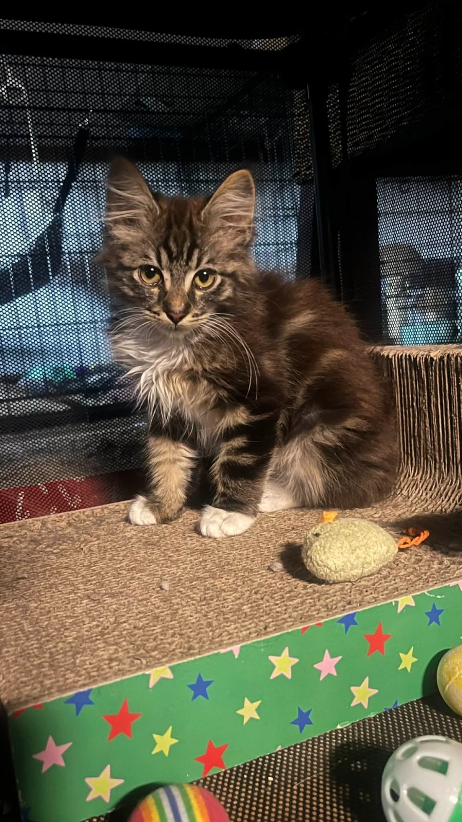 He can be shy and unsure at first, but once he starts to feel safe he becomes an absolute purr machine who enjoys gentle affection.