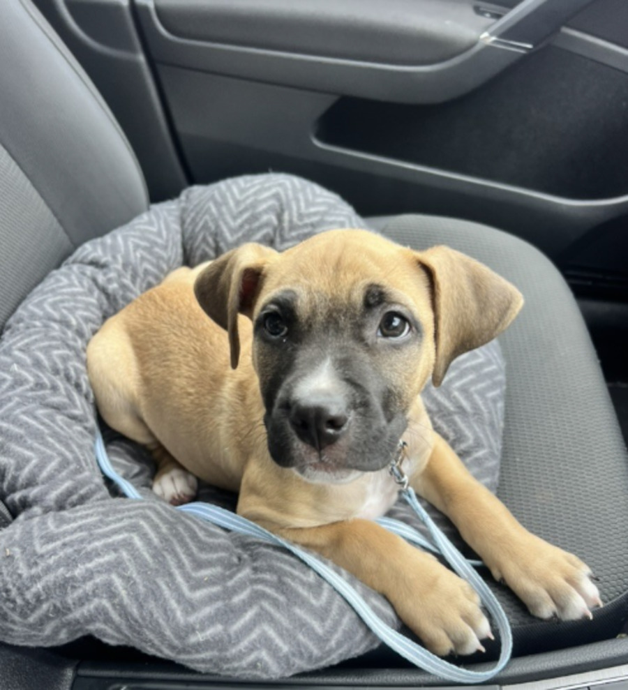 As a Boxer cross, Pumba will grow into a medium-sized dog with plenty of love to give. He’d thrive in a home where he’s treated as part of the family – whether that’s a household with kids or anyone with room in their heart (and on their couch) for a devoted, playful companion.