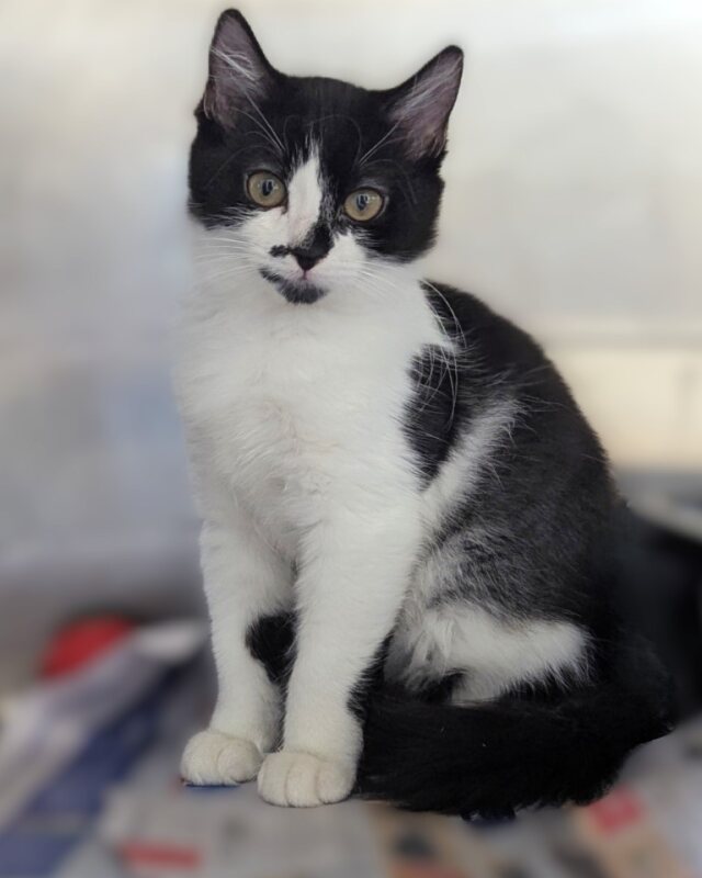 Hi, I'm Sprout. I'm a female Domestic Short Hair kitten with a soft coat and a curious little heart. I’m 3 months old, full of tiny paws, big dreams, and gentle purrs. My energy is average for a cat in a home; I love short, engaging play sessions and then curl up on your lap for a warm nap. I have no known child-related issues, so I may be a good match for families with gentle kids. I’m still learning manners and litter box etiquette, and I’m eager for a patient family to teach me. I’d be happy sharing a home with another calm cat or a friendly dog after careful intros. I crave a loving family who will watch me grow, explore safely, and provide cozy spots to nap and observe the world. If you think we could be a match, please ask about me—Sprout—at your shelter today. Let’s grow together.