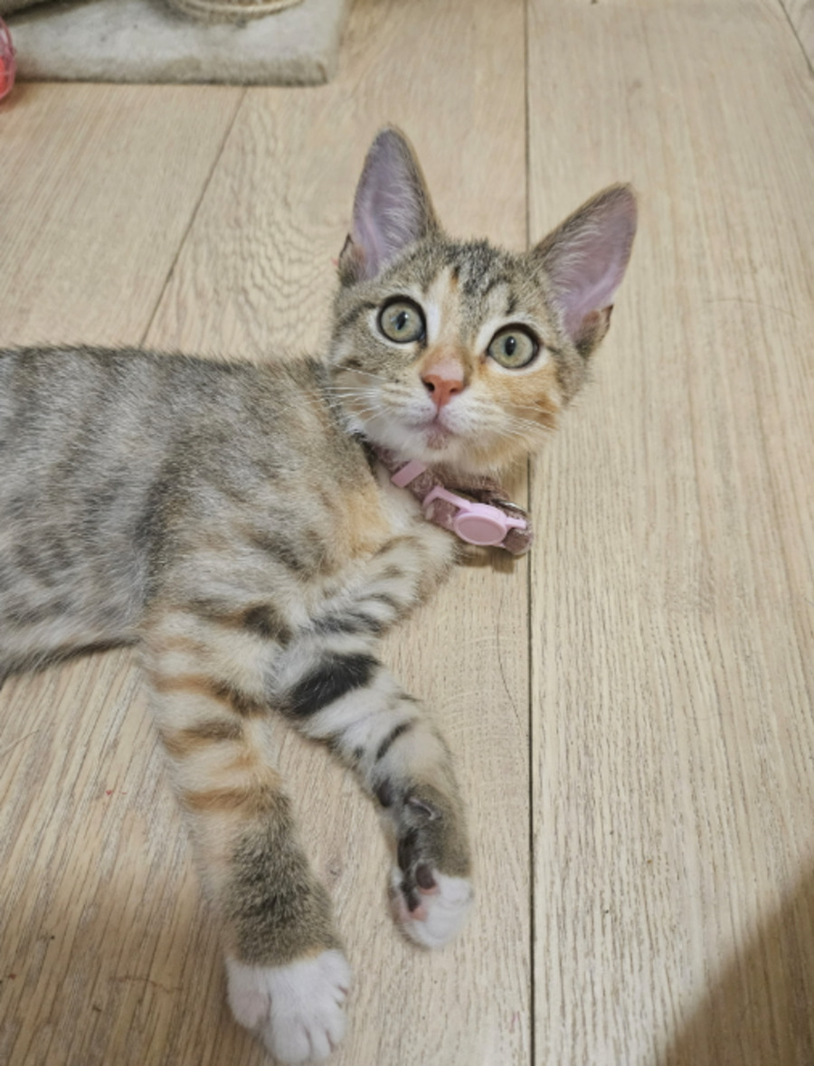 If you’re looking for a gentle soul, she is your girl. While she enjoys playful kitten adventures – batting at toys, chasing little balls, and exploring with bright, curious eyes – her true superpower is affection. She absolutely melts into your hands when you pet her and will happily curl up against you for as long as you’ll let her.