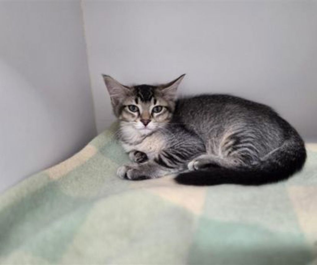 George is a sweet little kitten who has already come a long way in building his confidence. The big wide world can still feel a little overwhelming at times, but he's learning more every day that people can be kind and that hands bring gentle pats and safe cuddles.