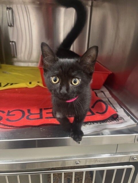 Hi, I’m Peggy, a female Domestic Short Hair kitten. I’m 2 months old and full of curiosity. My daily motto is purr, pounce, nap, repeat. I love gentle pets, warm laps, and playful sessions with feather toys and soft balls. I’m learning to use my litter box and I’m already a good snuggler when I’m sleepy. I’m hoping for an indoors-only home with patient humans who will give me regular meals, a cozy bed, and lots of love as I grow. I’m friendly, eager to meet new people, and I adapt quickly to a calm routine. I’d do best in a home where I can explore safely, with a playmate or with someone who enjoys gentle companionship. If you’re searching for a sweet, affectionate kitten to start your family with, I’d love to meet you. Please ask about adopting me and giving me a forever home.