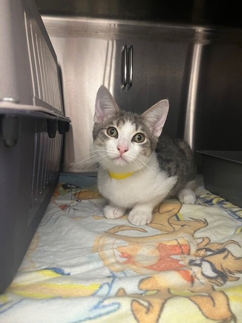Hi, I'm Ziggy. I'm a male kitten, Domestic Short Hair, about 3 months old. I'm curious, lively, and affectionate. I love chasing feather wands, exploring new nooks, and curling up in a warm lap after a play session. I’m good with gentle humans and I’m learning to get along with calm pets. I’ll bring daily giggles and a gentle purr whenever you cuddle me. I thrive on routine, a cozy scratch post, and lots of interactive play. I’m looking for a patient, loving indoor home with someone who will give me structure, kindness, and plenty of hugs as I grow. If you’re ready for a curious little friend who will become a loyal, joyful part of your family, I’m your guy.