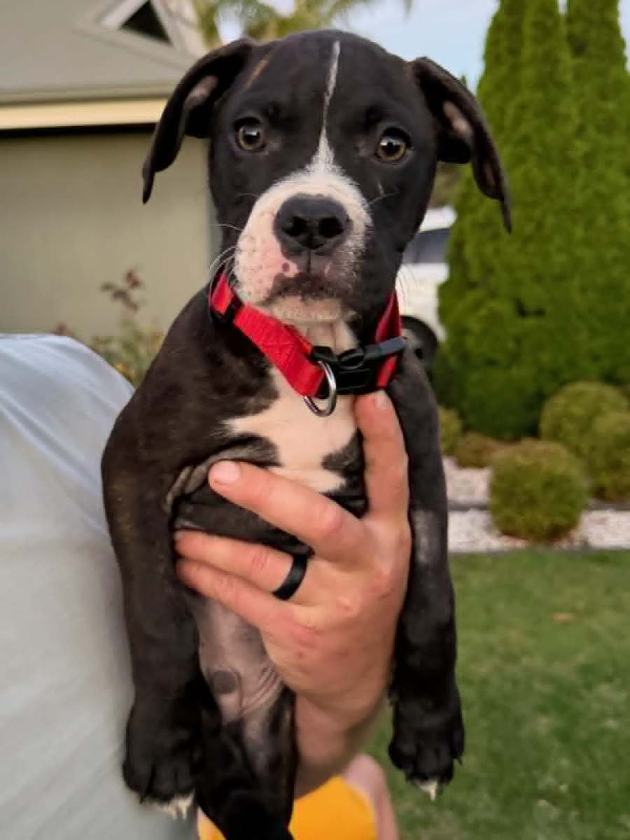 Meet Teddy, a handsome 10‑week‑old Boxer cross puppy with a striking black and white coat with touches of brindle. Like his brother Tigger, Teddy is one of six puppies rescued and has been growing up safely in foster care, learning all the basics of puppy life.