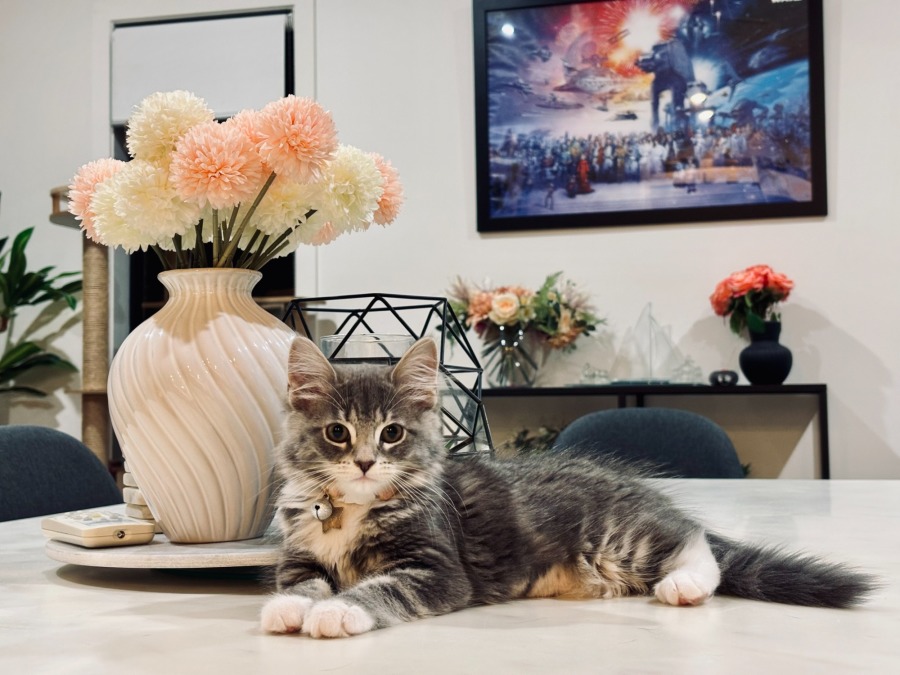 Meet Pastel, the charming grey and white tabby whose joy for life is as vivid as her name implies. With an infectious blend of playfulness and relaxation, Pastel embodies the ideal companion for those who appreciate both adventure and tranquility. A foodie at heart, she shows a keen interest when you're whipping up dishes in the kitchen, subtly supervising with her nose held high and her eyes bright with curiosity.