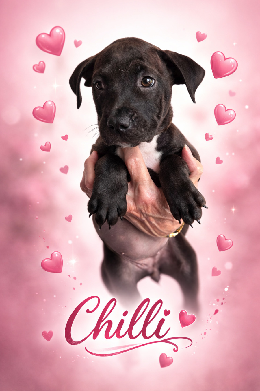 Sweet little Chilli is a 9 week old Staffy/Labrador mix who has found herself in Wally’s Doggie rescue care along with her litter mates.