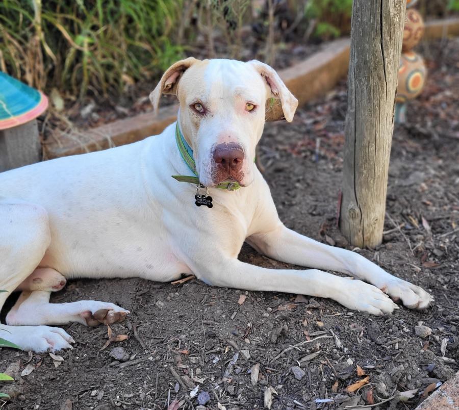 He enjoys his walks and is good on lead, café-trained, and knows his basics like sit, drop, and recall. He’s also excellent with his toilet habits. At around 45kg, Mackalicious is a big boy, so his new family will need to be comfortable handling a large dog when out and about.