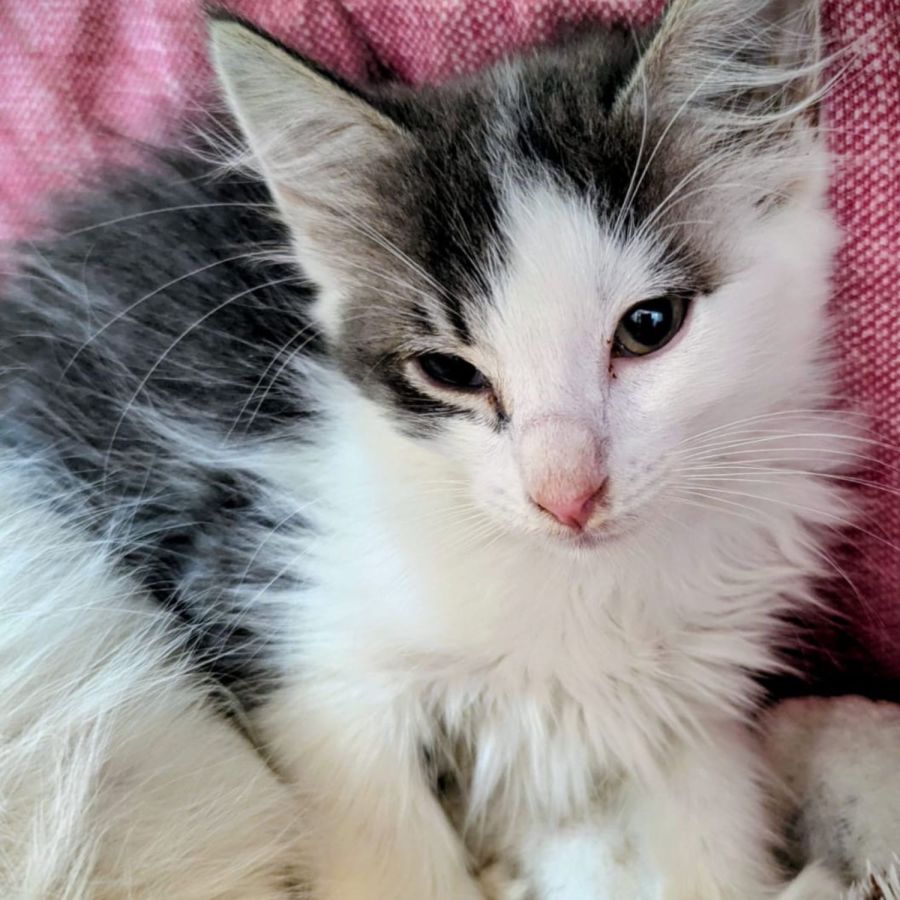 His fluffy grey fur, gentle eyes and soft nature make him an incredibly endearing kitten. He is thoughtful, sweet, and quietly hilarious!